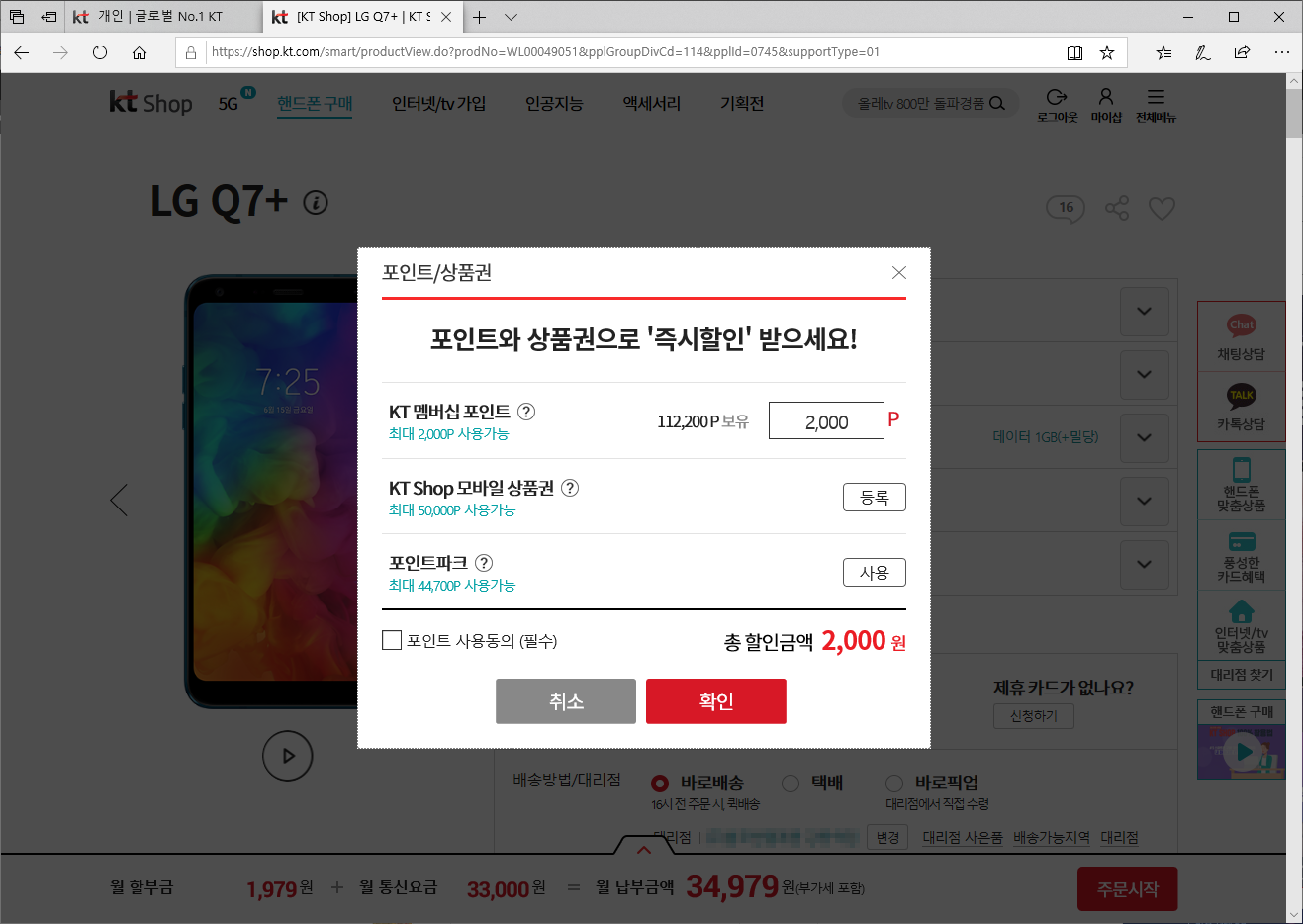 KT 홈페이지(kt.com)에서 핸드폰 주문하는 방법