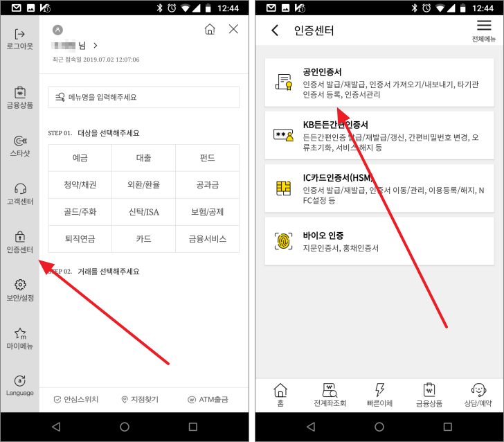 - 전체 메뉴에서 [인증센터]를 선택합니다.